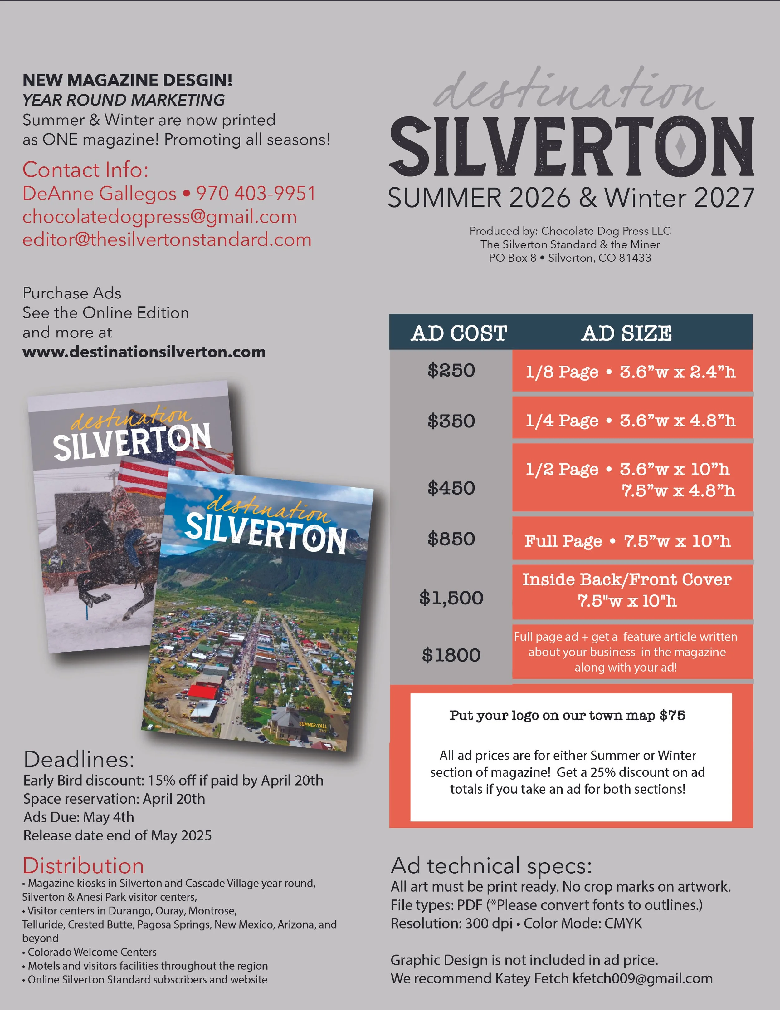 Purchase ads below or email us at editor@thesilvertonstandard.com